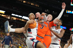 Fans and players alike reckoned with the Fighting Illini men’s basketball team’s loss to UConn Saturday night in Indianapolis, bringing the team’s historic season to an end.