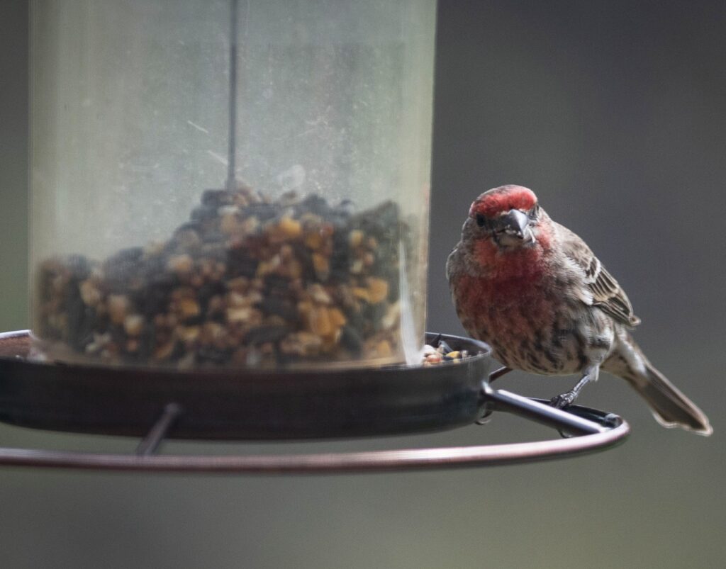 A house finch settles on a feeder in Lee’s Summit, Missouri. Researchers of a study at Ohio State University found bird populations are declining more quickly in agricultural hotspots.