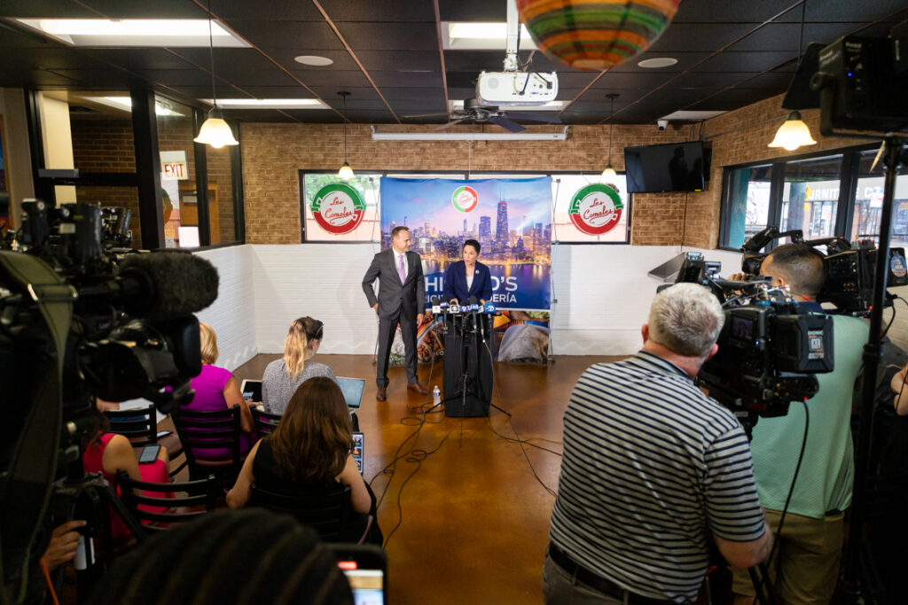 Mendoza made her announcement at Los Comales, a restaurant in Chicago’s Little Village neighborhood that specializes in Mexico City-style tacos. Christina Gonzalez, the co-owner of the Los Comales chain and daughter of its founder, noted that Mendoza was from the neighborhood.