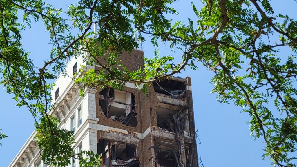 The building went through a series of owners, while its condition deteriorated. That led one owner, Corbin Financial Corp. in Kentucky, to force the last of the tenants out of the building in 2005. The building’s rooftop transmitter towers remained, but except for those, Bresee Tower has been empty ever since.