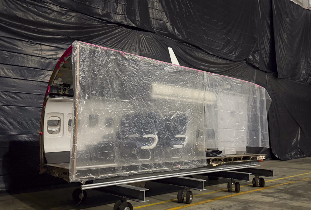 What used to hold massive aircraft is now filled with movie sets, including a police station, a grandmother’s living room and a prison cafeteria.