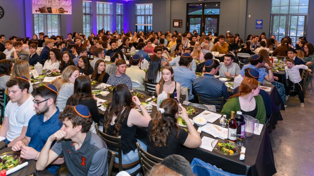 Jewish students and community members fill the main hall of the Chabad Center for Jewish Living at a Passover seder on April 22, 2024. Photo courtesy of Illini Chabad