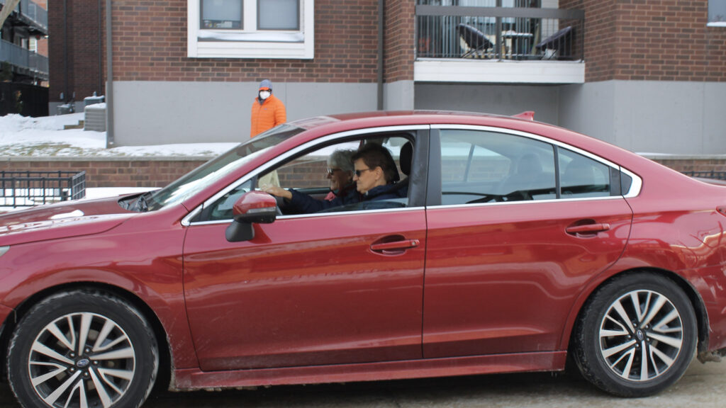 The driver of the car turned out to be Julie Pryde, trying to keep the protesters safe from other cars. She’s a former public health administrator for the Champaign-Urbana Public Health District. Friday, she was a concerned bystander: “I was afraid that somebody wasn’t going to see them, and ram into them. And since I’m a mom, I got behind them with my blinkers on and just followed them all the way down here.”