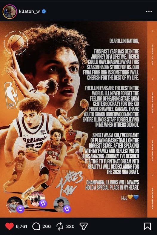 After being eliminated by U-Conn in the Final Four, Illinois freshman guard Keaton Wagler has declared to submit his name to the 2026 NBA Draft.