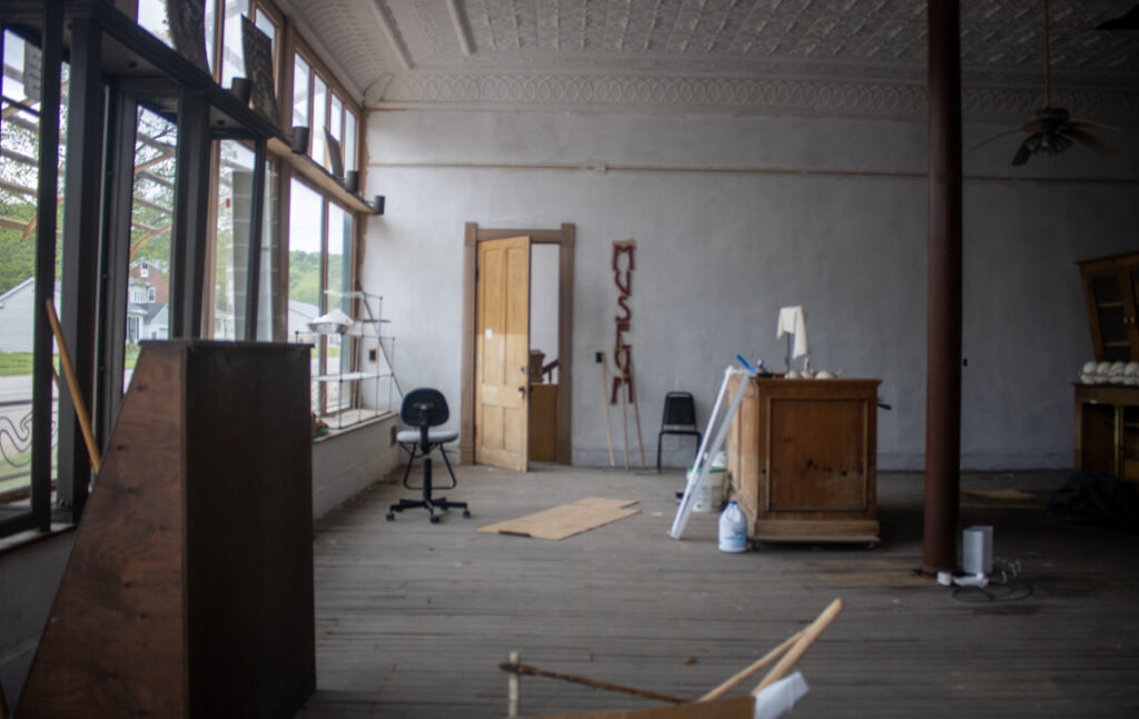 The inside of the Center for American Archeology sits mostly empty aside from a few pieces of furniture and a sign that says “MUSEUM.” The Center is closed while it waits for FEMA grants to be reinstated. Bidgette Fox/Capitol News Illlinois