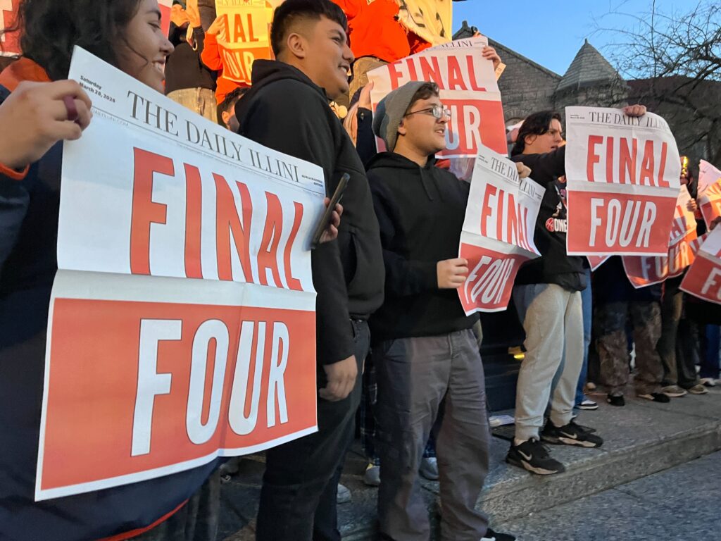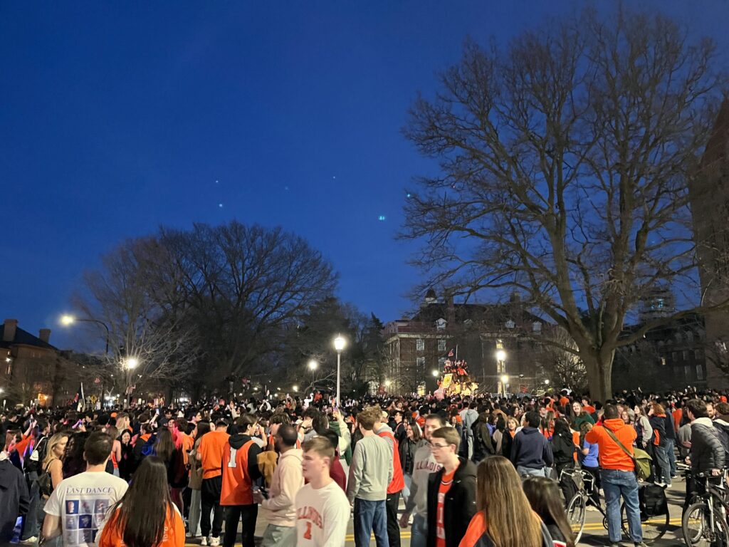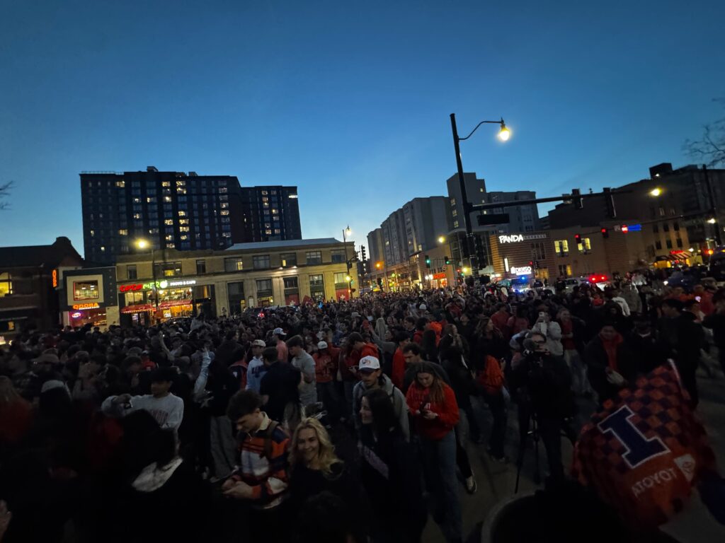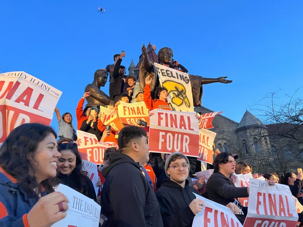 This will be the sixth trip to the Final Four for Illinois, which has never won a national title.Students gathered on the campus of the University of Illinois Urbana Champaign to celebrate the Men’s Basketball team’s defeat of Iowa. Next stop: the Final Four.