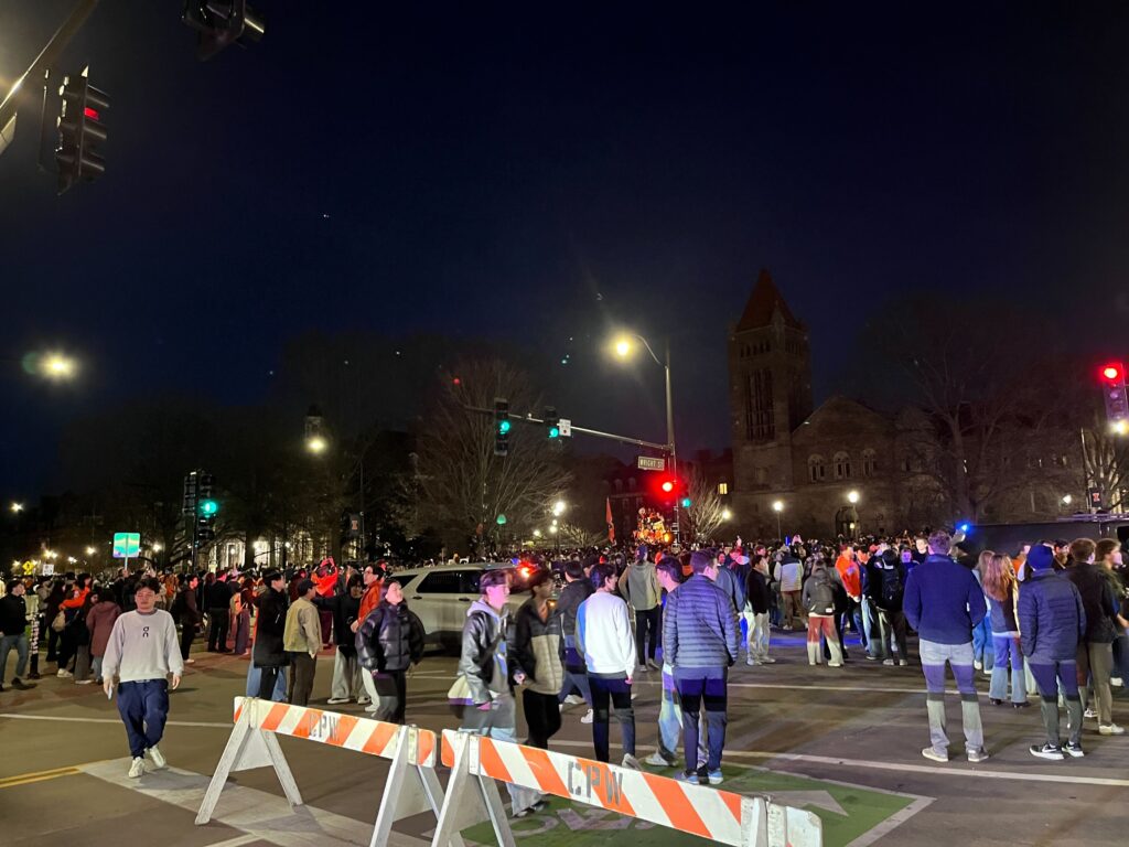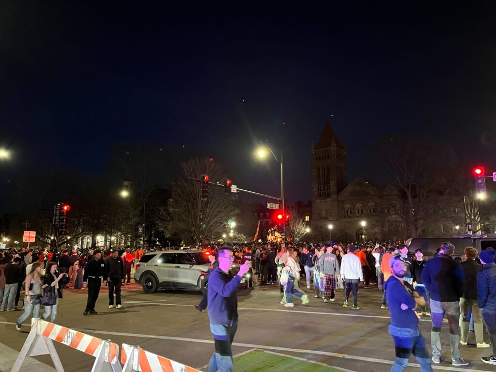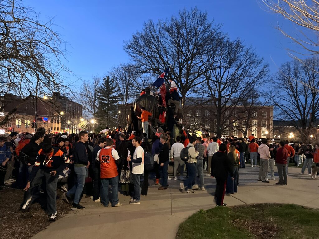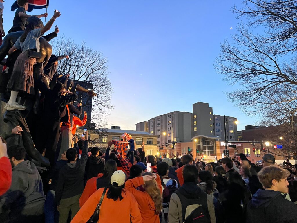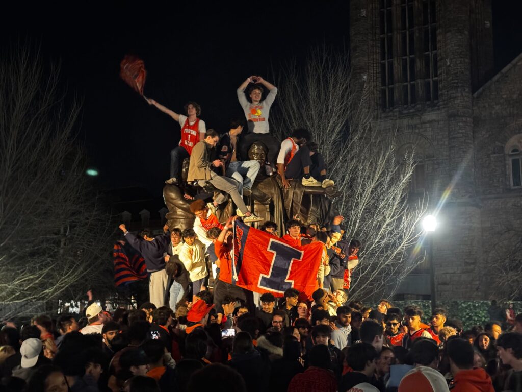 This will be the sixth trip to the Final Four for Illinois, which has never won a national title.Students gathered on the campus of the University of Illinois Urbana Champaign to celebrate the Men’s Basketball team’s defeat of Iowa. Next stop: the Final Four.