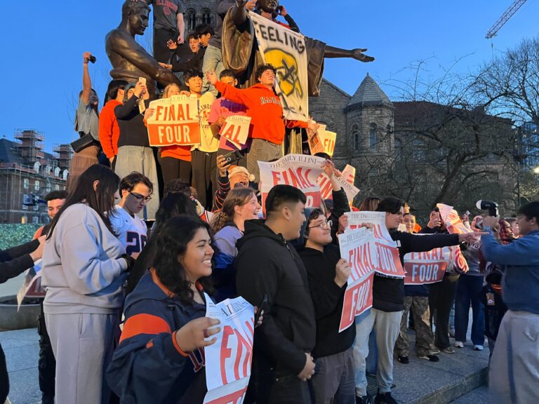 This will be the sixth trip to the Final Four for Illinois, which has never won a national title.Students gathered on the campus of the University of Illinois Urbana Champaign to celebrate the Men’s Basketball team’s defeat of Iowa. Next stop: the Final Four.