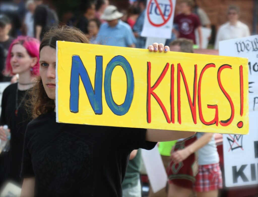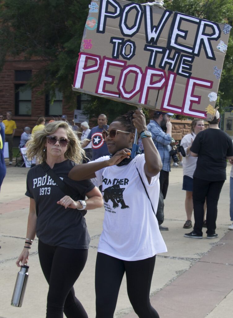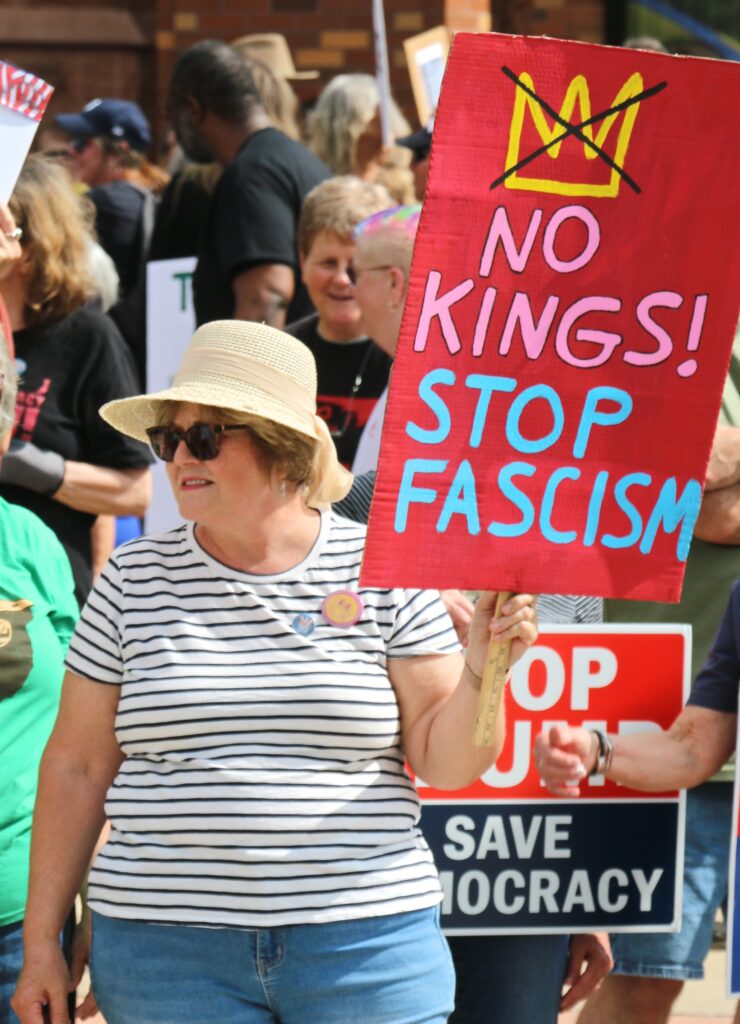 Thousands of people take part in the ‘No Kings’ rally in front of the Champaign County Courthouse in Urbana.
