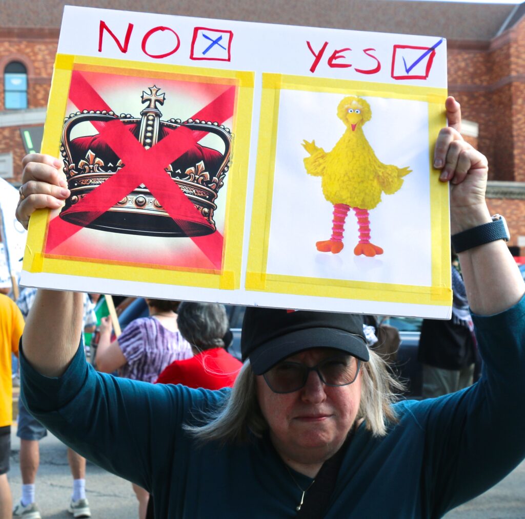 Thousands of people take part in No Kings rally in front of the Champaign County Courthouse in Urbana.
