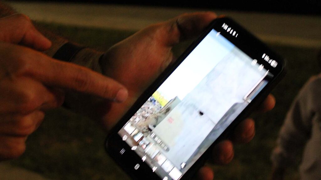 Then he swiped through the photo gallery in his phone and paused on a picture of rubble.